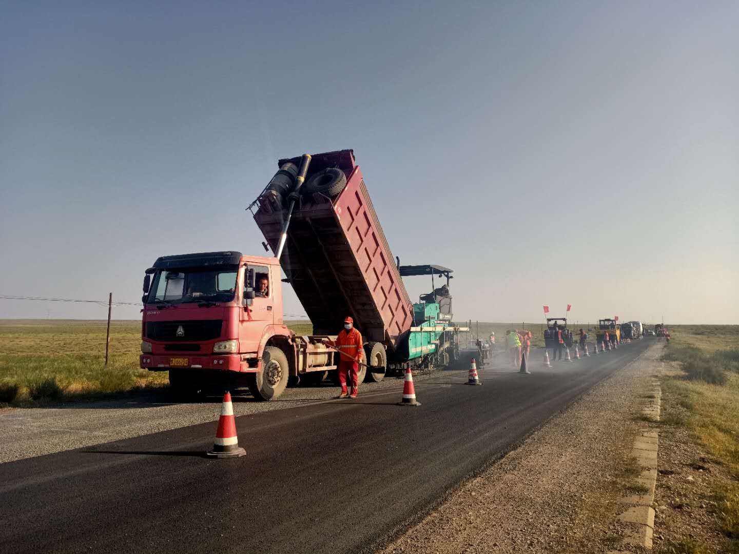 該路段銑刨原瀝青混凝土1厘米厚10152平方米,挖出原4厘米厚瀝青混凝土面層15494平方米,挖出原20厘米厚水泥穩(wěn)定碎石基層15494平方米,按照工程結(jié)構(gòu)分類,加鋪1厘米厚橡膠瀝青碎石封層215892平方米,鋪筑3厘米厚AC-13細(xì)粒式瀝青混凝土216024平方米,回填24厘米厚混凝土基層15494㎡。新建C25現(xiàn)澆混凝土護(hù)肩板,累計(jì)使用C25現(xiàn)澆混凝土1067.65m3,培土路肩5277m3。